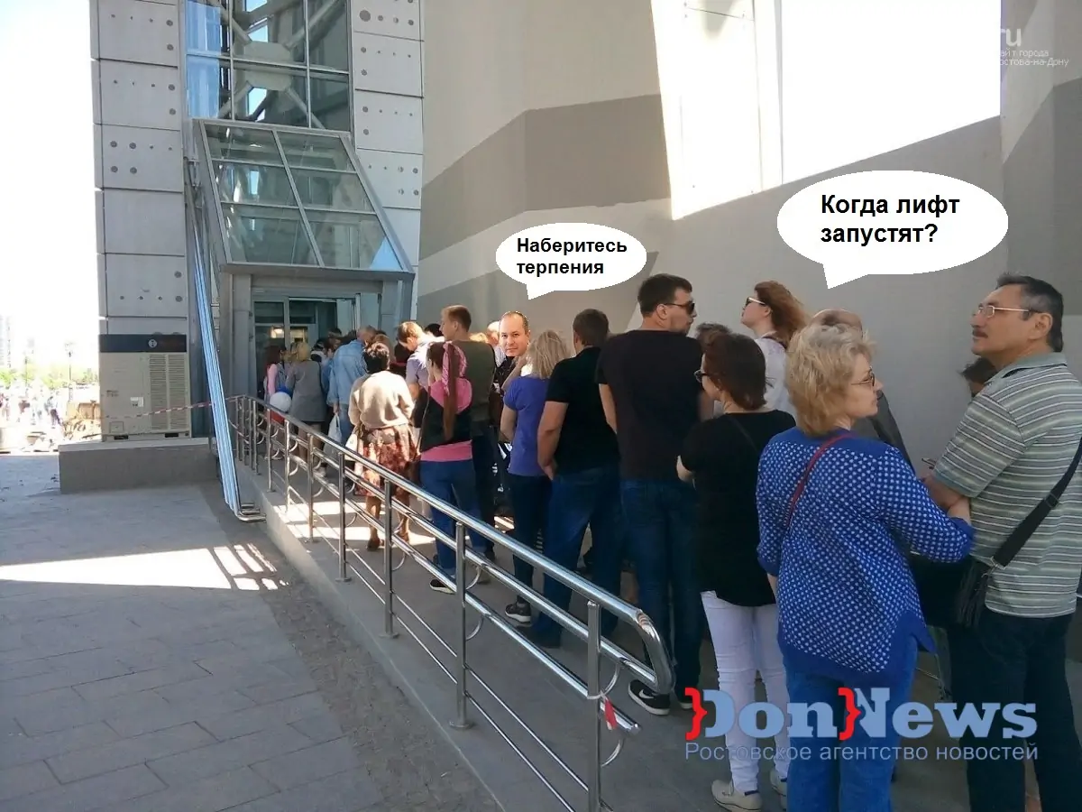 В новом Левобережном парке это выражение из-за неработающих лифтов тоже как нельзя более кстати.
