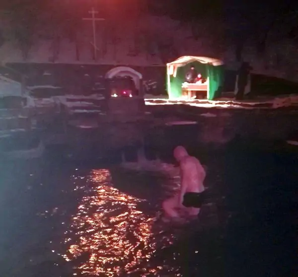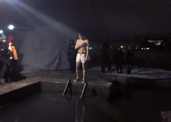 На Северном водохранилище активность началась около 19:00. Священник ещё не успел начать богослужение и освятить воду, а самые нетерпеливые уже выстроились в очередь к иордани.