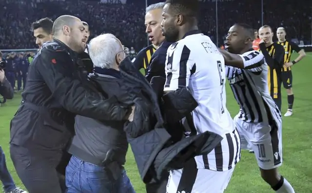 Напомним, что скандал разгорелся во время матча ПАОКа против АЕКа. Арбитр не засчитал ПАОКу решающий гол, усмотрев офсайд. Такой расклад не устроил Ивана Саввиди, возглавляющего клуб, и он лично вышел на поле, чтобы выяснить отношения. По словам ведущего радиостанции Marco Маноло Хименеса, Саввиди угрожал арбитру и представителю клуба соперников, а за спиной у него виднелась кобура с пистолетом. Решать проблему пришлось охранникам стадиона.