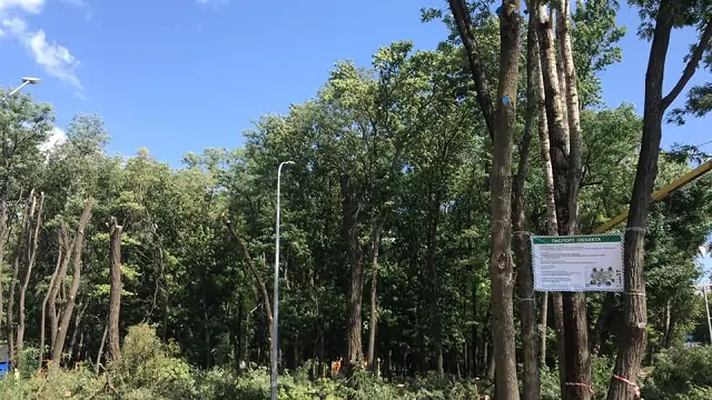 Согласно проектной документации по реконструкции парка Осенний, подрядчик должен применить те или иные меры к 1114 деревьям. В основном это снос, а также санитарная или глубокая обрезка. Однако оснований для сноса указывается два. С первым всё понятно — гниль, прикорневые дупла, усыхание ствола и так далее. Второе основание — снос по проекту. Здесь уже идёт речь о здоровых деревьях, на месте которых должны появиться дорожки, арт-объекты и прочие элементы благоустройства. В общей сложности на том основании, что они не вписались в проект, должны быть снесены 150-200 деревьев.