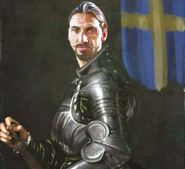 Лидера сборной Швеции Златана Ибрагимовича художник изобразил в рыцарских доспехах.
