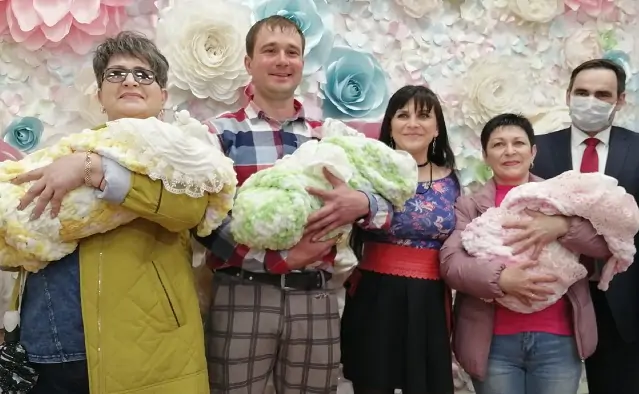 Ещё одна тройня появилась 31 марта. Многодетный папа рассказал, что изначально просил у своей жены Анастасии дочку, так как у них уже есть два старших сына. Но в итоге у них родились сразу две дочки и ещё один сын. Взяв на руки детей, мужчина не смог сдержать слёз.