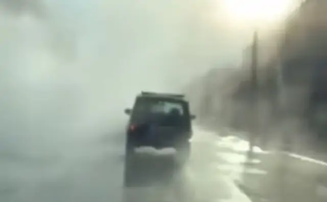Снятый очевидцами ролик появился в соцсетях. На записях видно, что Красноармейская буквально утопает в пелене густого белого тумана, а дорога полностью залита кипятком.