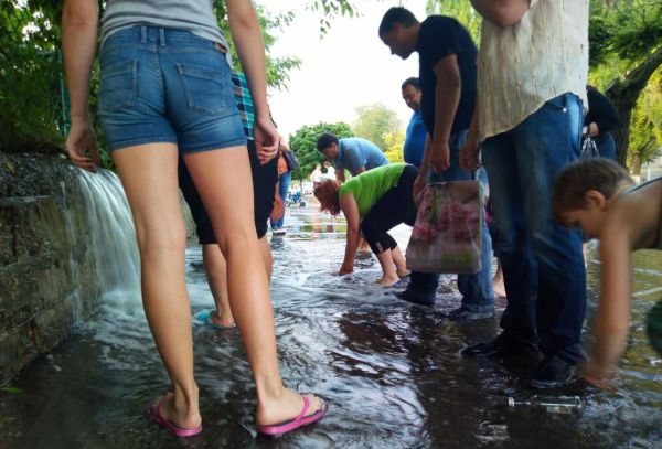 Видео запечатлело, как по проезжей части улицы Инструментальной струится вода, в которой плещется мелкая рыбёшка. Горожане голыми руками со смехом собирали улов в полиэтиленовые пакеты.