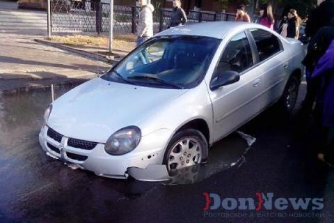Ещё накануне вечером по проезжей части бежали ручьи прорвавшихся канализационных вод. Но аварийные службы устранять течь не спешили. Утром в пятницу на дороге образовалась промоина, в которую угодила автоледи на Dodge. В яме размером примерно метр на метр оказался весь бампер машины. Кроме того, выяснилось, что ранее туда же попал ещё один водитель, но ему повезло больше: он провалился лишь одним колесом и смог выехать из западни.