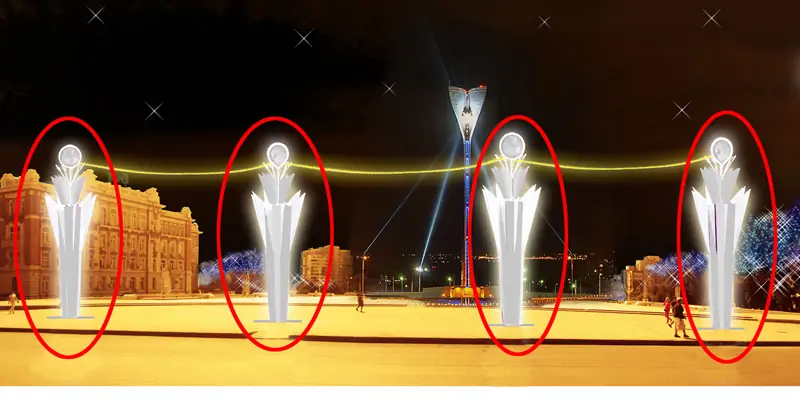 Согласно документам, в списке украшений — флажные композиции, пилоны, флаги, фигуры новогодних персонажей, а также рекламные конструкции.