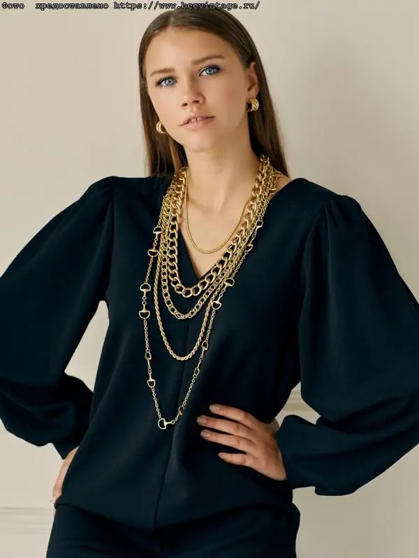 Колье выгодно подчеркнет шею обладательницы. Классический и наиболее распространенный вариант — позолоченное колье-чокер под шею, размером до 40 сантиметров. Такое колье красиво ляжет между ключицами и привлечет внимание к зоне декольте. Если нужно надеть украшение на одежду, можно обратить внимание на колье из нескольких цепочек, ложащееся ярусами.