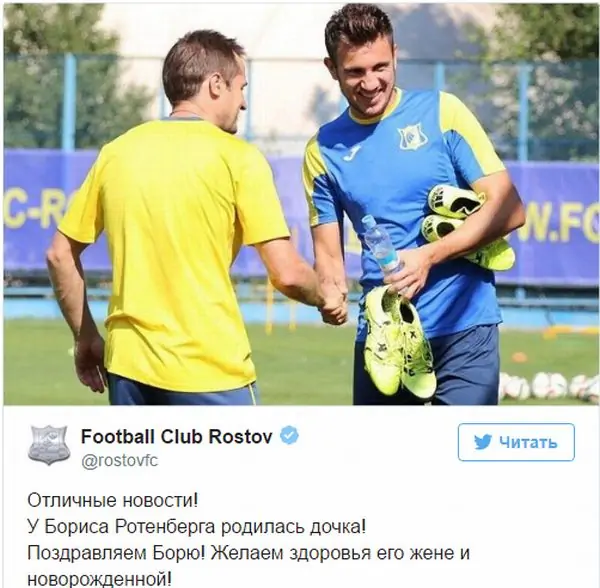 Напомним, что несколько дней назад ещё один футболист «Ростова» стал отцом. 1 июня у защитника Бориса Ротенберга родилась вторая дочь. Первая дочь по имени Лия появилась на свет 28 января 2013 года.