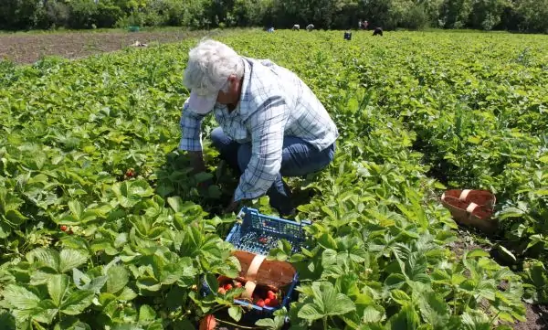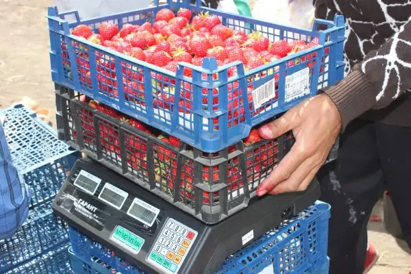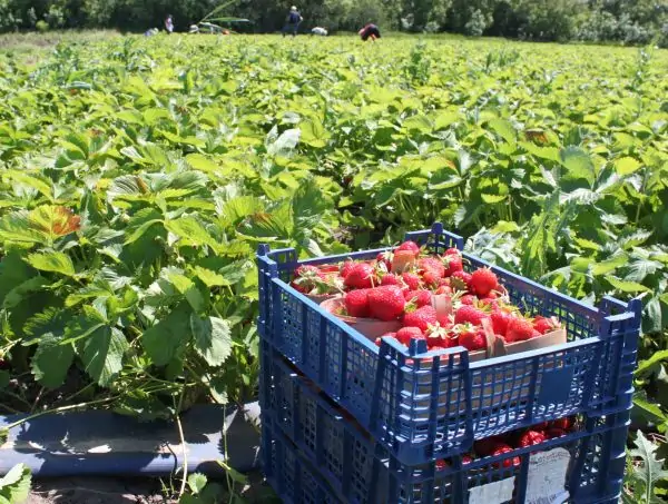 Клубнику на плантации не сортируют. Единственно условие для сборщиков — собирать ягоды в лукошки, а перед взвешиванием высыпать их в ящик. Это позволяет бригадирам видеть, что клубника собрана спелой.