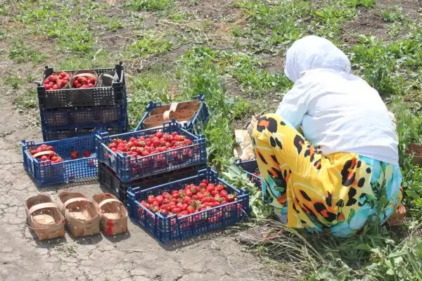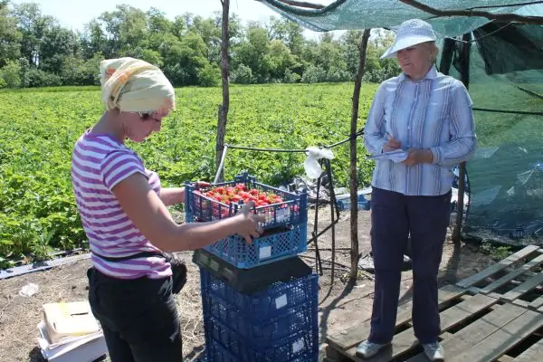 Убирают ягоду через день. Для этого на клубничную плантацию приезжают работать 100-150 человек. Рабочие едут не только из соседних сёл и хуторов, но и из Ростова. Кстати, ростовчане работают на совесть и собирают в разы больше ягод, чем местные жители.