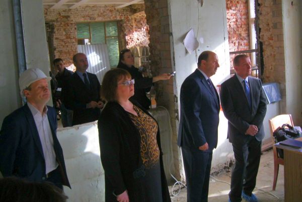 К моменту завершения рассказа появился гендиректор фирмы-подрядчика Адам Батажев и повёл гостей по зданию. Поднялись на второй этаж, потом спустились во двор.