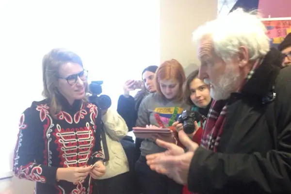 Руководитель Ростовского регионального отделения Всероссийского общества охраны памятников истории и культуры Александр Кожин преподнёс Собчак подарок — значок в виде портрета Александра Солженицына. Общественник отметил, что и культурных проблем в городе немало. Например, памятник писателю, которого знает весь мир, в Ростове так и не установили — вместо него открыли бюст разведчика Рихарда Зорге. Ксения с благодарностью приняла презент и сразу прикрепила значок к своему платью.