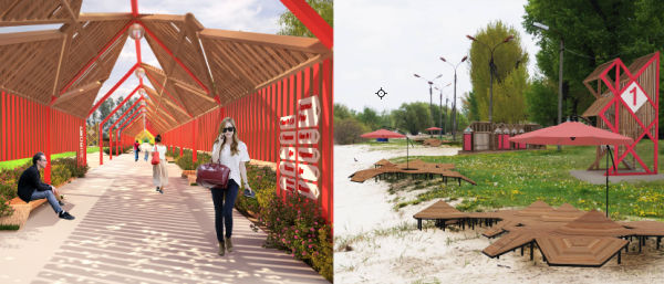 Согласно данной концепции, в едином стиле будут оформлены все территории левобережья. В том числе спортивно-парковые и спортивно-рекреационные площадки, пешеходные зоны и районы размещения пунктов общественного питания.