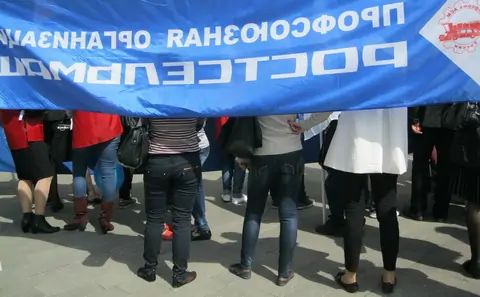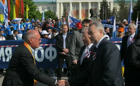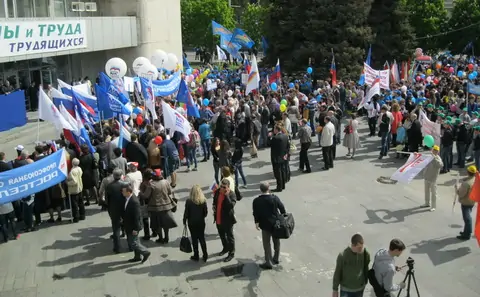 Ровно в десять колонна медленно, на первой пониженной двинулась вперед. Какое-то время потребовалось на выравнивание фронтальной части — главного баннера с надписью «Федерация профсоюзов Ростовской области».