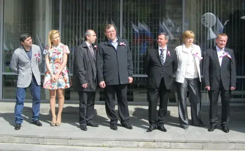 Чуть позже возле памятника первому космонавту появились юноши с транспарантами, за ними — преподаватели, а уж в последний момент — большие звёзды из полиции, депутаты и чиновники областного правительства.