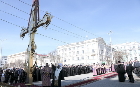 В субботу, 22 марта, на Соборной площади Ростова состоялось освящение новых куполов и надглавных крестов Ростовского кафедрального собора Рождества Пресвятой Богородицы. Чин освящения возглавил митрополит Ростовский и Новочеркасский Меркурий.