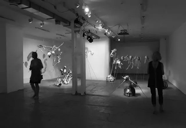Пока зрители ждут автобуса для поездки в аэропорт, часть из них переходит в северную часть здания, где открылась чарующая и одновременно пугающая выставка ростовского скульптора Маши Богораз, которая специализируется на киберпанке и мифологии.