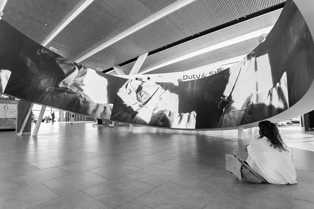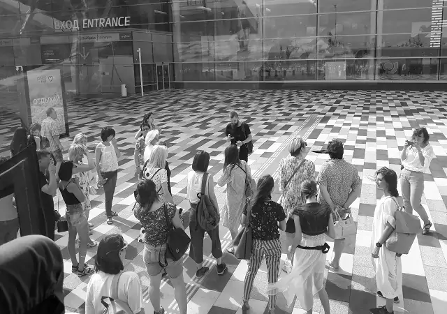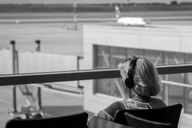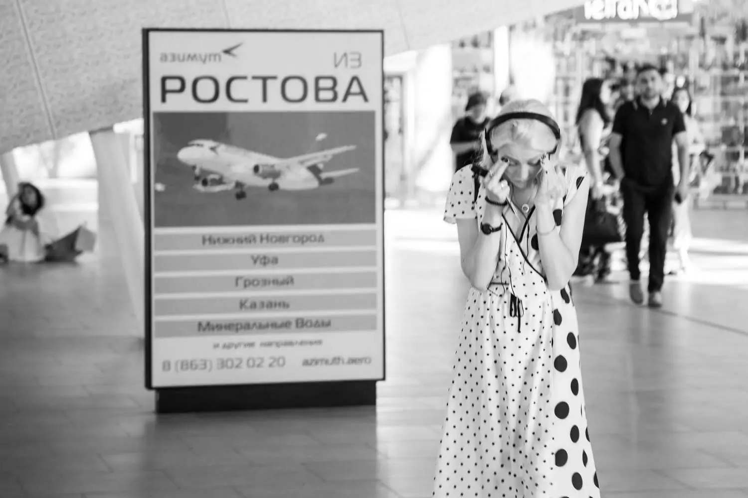 Во время прослушивания многие усаживаются на боковые кресла и устремляют взгляд на взлётную полосу. На первом плане приземляются и взлетают самолёты, а чуть дальше начинаются бескрайние степи.