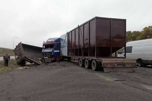 Как выяснилось позднее, у «Камаза» оторвался прицеп,доверху набитый семечками довреху. Миновав на полном ходу разделительную полосу, он врезался в грузовик Volvo, двигавшийся во встречном направлении.