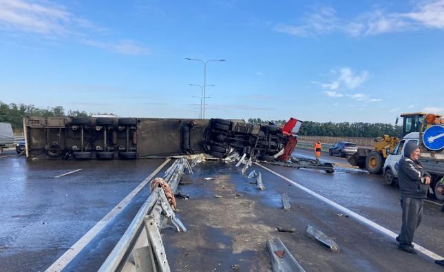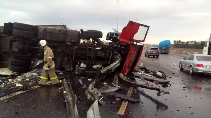 В Аксайском районе во вторник, 28 сентября, на 1030-м километре федеральной трассы М4 «Дон» перевернувшийся грузовик перекрыл дорогу. Как сообщили в Ростовской областной поисково-спасательной службе, водитель грузовика MAN не справился с управлением и влетел в отбойник. От удара фура перевернулась на бок, перегородив проезд другим автомобилям.