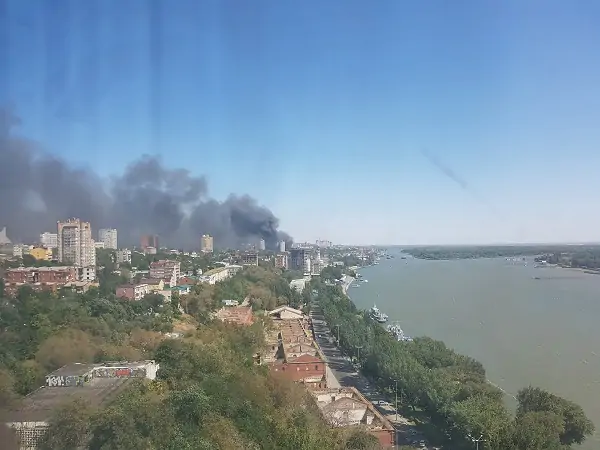 Ростовчане спешно собирают вещи и покидают зону пожара. Информации о пострадавших пока нет.