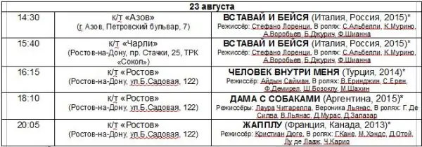 Фестивальное кино можно будет посмотреть в Ростове, Азове и Таганроге с обеда и до поздней ночи. Планируется, что после окончания фильма зрители смогут задать вопросы его создателю. Организаторы фестиваля Bridge of Arts предоставили donnews.ru подробное расписание: