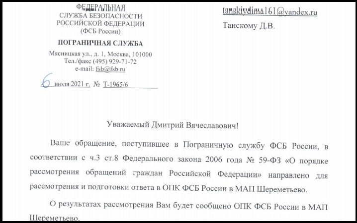 25-летний ростовчанин Дмитрий Танский написал около 10 заявлений в различные правоохранительные органы с жалобой на действия сотрудников аэропорта Шереметьево. Мужчина заявляет, что прямо на его глазах пограничник порвал его паспорт. Из-за этого Дмитрий не смог вылететь за границу, и ущерб ему не возместили.