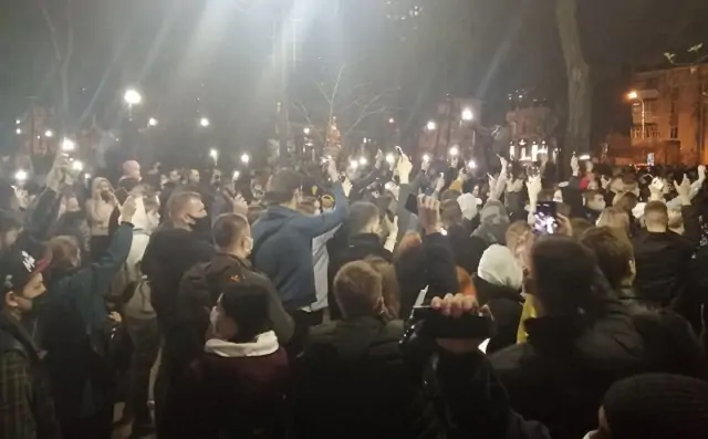 Через громкоговорители полиция просила людей разойтись и не ходить по газонам, но вместо этого митингующие зажгли фонарики и пели песню Виктора Цоя «Перемен требуют наши сердца». По состоянию на 20:30 протестующие начали понемногу растягиваться и частично расходиться по своим делам.