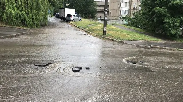 В Ростове дождь, который начался ещё вечером 25 мая и продолжился днём 26 мая, смыл асфальт в переулке Грибоедовском. Куски асфальта, которые смыли потоки воды, стали довольно серьёзными барьерами, как для водителей, так и для пешеходов.