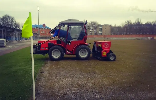 На «Локомотиве» работает спецтехника, трава явно не в лучши состоянии