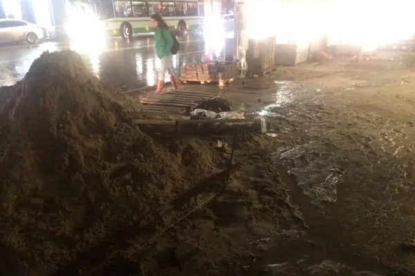 Укладка новой плитки началась ещё летом. Тогда горожане могли почувствовать себя как на пляже, утопая по щиколотку в песке. Правда, приятного в этом было мало и также вызывало массу нареканий у горожан. Теперь же этот песок превратился в слякоть и грязь.