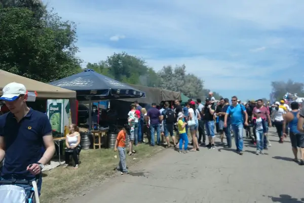 После прохождения досмотра перед зрителями открывался вид на огромный фудкорт, растянувшийся на километр. Здесь было всё, что душе угодно — от традиционных шашлыков до модных бургеров. Впрочем, звёздами дня были отнюдь не эти продукты, а пиво. Лишь у палаток с хмельным напитком можно было наблюдать очереди, которые растянулись на несколько метров.