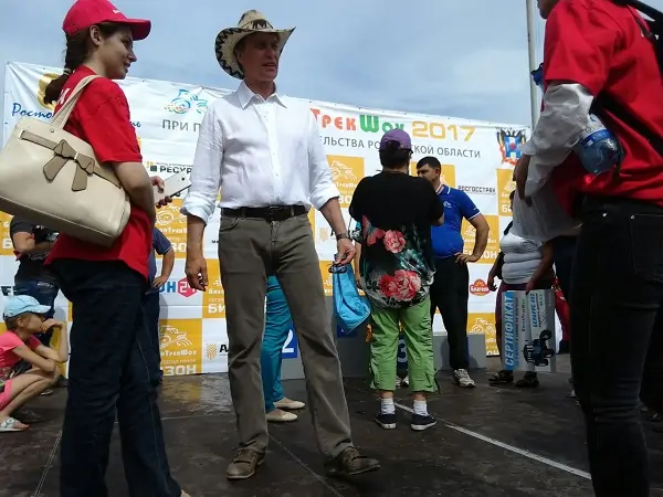Гонки «Бизон-Трек-шоу» проводились в этом году в 15-й раз. Их основателя — гендиректора завода по поставке сельхозтехники «Бизон» Сергея Суховенко — даже в огромной толпе людей можно узнать издалека по ковбойской шляпе из вестернов Серджо Леоне и необычным туфлям родом из чилийской пустыни Атакама.