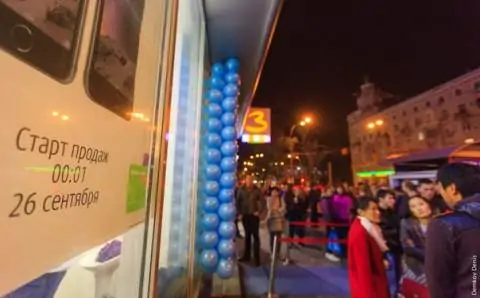 Ровно в полночь двери открыл «Связной» на Садовой. Здесь любителей гаджетов ждала развлекательная программа, видимо, чтобы было не скучно стоять в очереди. Как сообщили по горячей линии салона связи, купить новинку от iPhone могли лишь те, кто сделал предзаказ. Остальным предстояло облизываться, стоя в сторонке.
