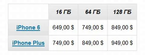 Разумеется, в зависимости от объёма памяти телефоны будут стоить по-разному. Так, стоимость iPhone 6 и iPhone 6 Plus с объёмом памяти 16 Гб составит 31 990 рублей и 36 990 рублей соответственно. Цена «яблока» с 64 Гб памяти — 36 990 рублей за модель iPhone 6 и 41 990 рублей за iPhone 6 Plus. На iPhone 6 с 128 Gb установлена цена 41 990 рублей, на модель iPhone 6 Plus с аналогичным объёмом памяти — 46 990 рублей.