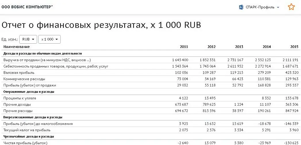 Судя по данным СПАРКа, печальные. Чистую прибыль в компании, согласно отчётности, видели по итогам года дважды — в 2012 и 2013 годах. В первом случае это 13 миллионов рублей, во втором — 5. В 2011, 2014 и 2015 годах «Вобис» сработал с убытком. Причём по итогам последнего отчётного периода — весь прошлый год — он составил аж 150 миллионов рублей.