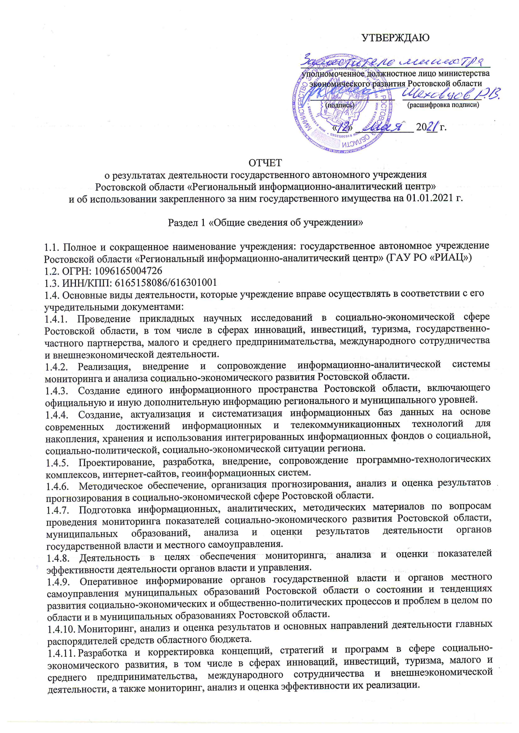 80,48₽О результатах деятельности государственного автономного учреждения Ростовской области "Региональный информационно-аналитический центр"