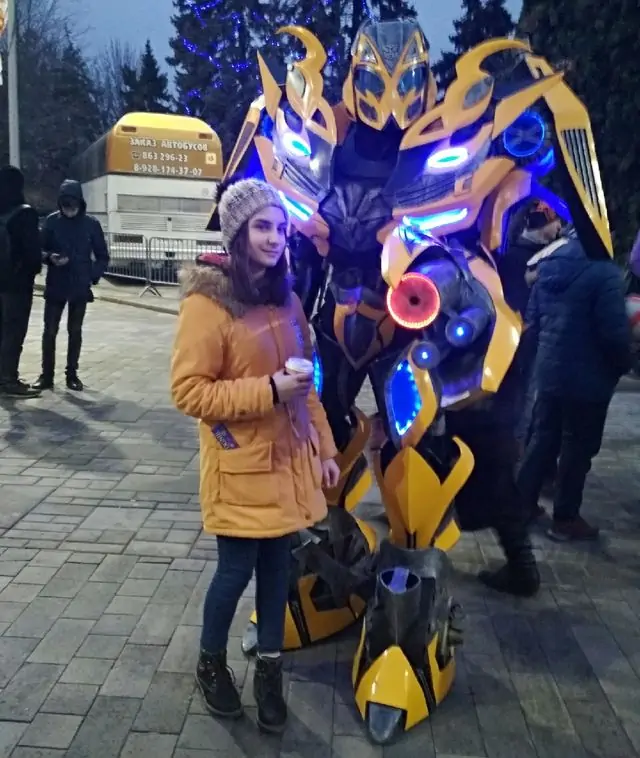 Праздник начался с новогодних песенок и танцев. Пришедших развлекали ростовые куклы. Особенный ажиотаж у детей и взрослых вызвал трансформер Бамблби. А вот самым весёлым оказался Снеговик, который плясал с ростовчанами, собирал хороводы и пожимал всем руки.