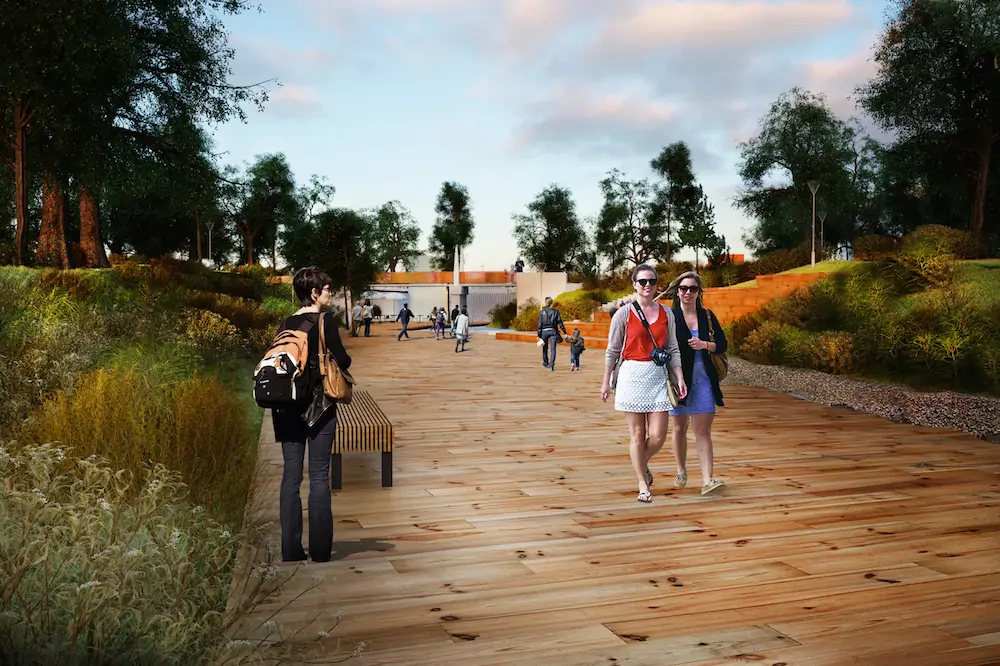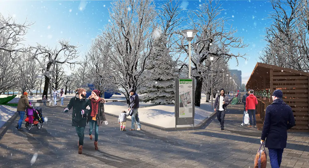 В парке будут использованы разные виды мощения — помимо плитки это будут деревянные настилы и террасы. Кроме того, благодаря переустройству пешеходных дорожек появятся дополнительные прогулочные маршруты с указателями для удобной навигации. А для комфортного посещения парка в тёмное время суток будет создана новая современная система освещения.