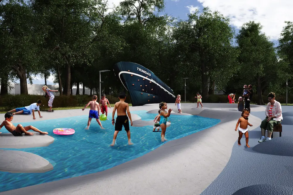 Ещё один объект, который предстоит реабилитировать, — плескательный бассейн. Неподалёку могут появиться и объекты для маленьких скалолазов.