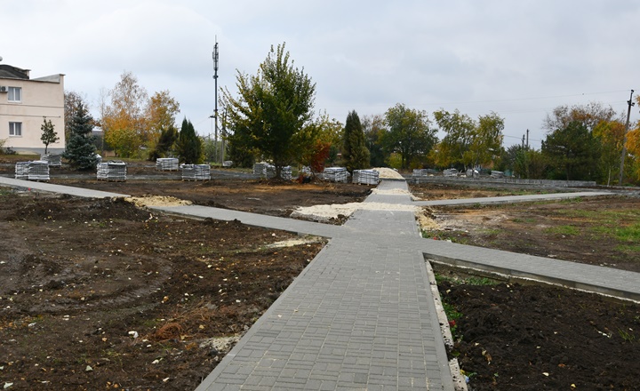 Строительство парка в посёлке Реконструктор Ростовской области должно завершиться осенью 2022 года. Общественное пространство обустраивают в два этапа. В этом году здесь провели подготовительные работы, сейчас укладывают плитку на будущих пешеходных дорожках и площадках.