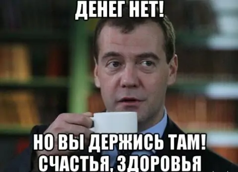 На втором месте в топе самых популярных мемов 2016 года оказался премьер-министр России Дмитрий Медведев, который во время визита в Крым пожелал жителям хорошего настроения, добавив «Денег нет, но вы держитесь». Фраза тут же стала мемом, а музыкант Семён Слепаков по её мотивам написал песню «Обращение к народу».