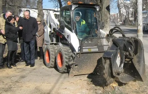 — Фрезеровщик ставится на мини-погрузчик и спиливает пень под основание за 20-30 минут, — пояснил всем Владимир Арцыбашев. — К примеру, мне сказали, что в Ленинском районе нужно убрать 300 пней. Чтобы их спилить, при восьмичасовом рабочем дне потребуется около месяца. Таких фрезеровщиков в городе три. Они востребованы и экономичны.