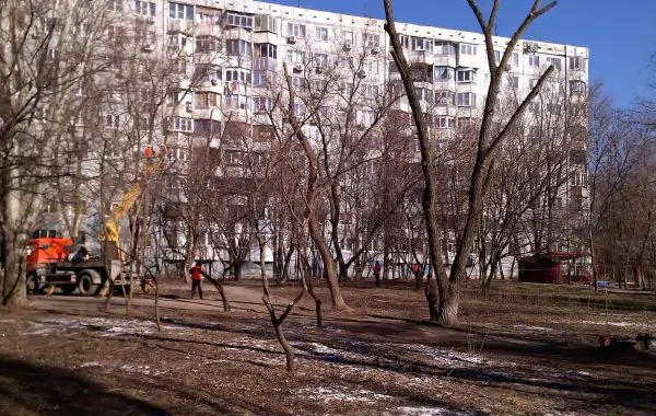 Процессия двинулась к безымянному скверу около дома № 77б по улице Мечникова, который довольно живо приводили в порядок около десяти человек.