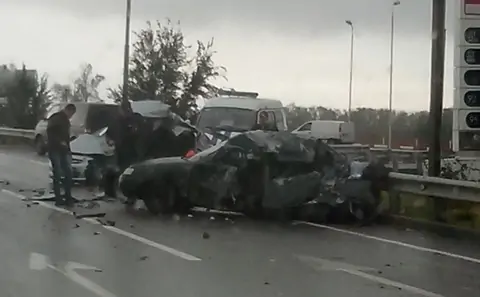 Сегодня, 25 сентября, около 12:30 на трассе М23 «Ростов — Таганрог» на выезде из Таганрога военный «Камаз» выскочил на полосу встречного движения и протаранил три легковых автомобиля.