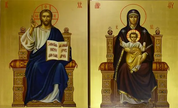 Приобретают пару: Образы Господа и Богородицы. Чаще всего рекомендуют иконы "Христос Вседержитель" или "Спас Нерукотворный" для жениха. Для невесты выбирают: