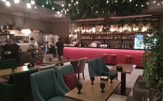 Заведение оформлено под стать названию. На потолке много зелени, как в джунглях, повсюду яркие цвета и даже настоящий попугай Лимончик.