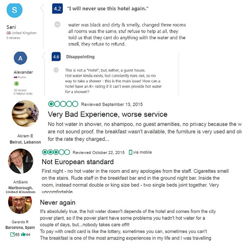 Недостаток информации не грозит при выборе жилья — в интернете десятки списков лучших отелей, «соответствующих европейским стандартам качества». Из отзывов можно узнать, что в городе проблемы с горячей водой — этому посвящено большинство гневных комментариев. Вот что пишет Герардо из Италии: