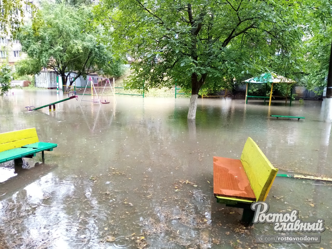 В Батайске затоплена детская площадка.