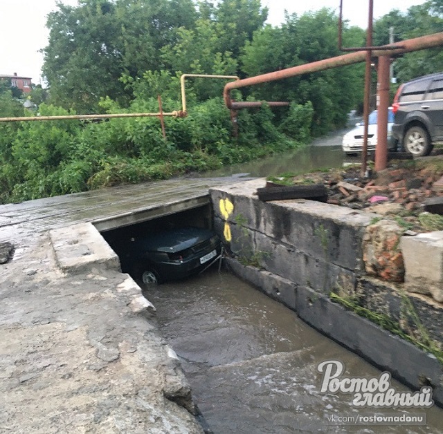 В СНТ Садовод-Любитель поток воды затянул машину под мост. С утра владельцам пришлось её долго искать.